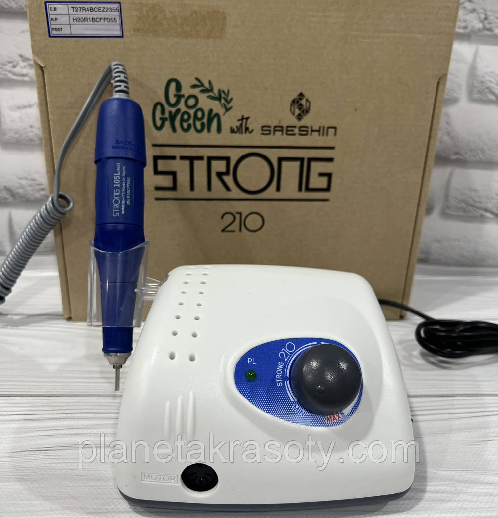 Це повністю вдосконалена і оновлена модифікація давно полюбився майстрами фрезера Strong 204. Професійна якість апарату, дуже гарний сучасний дизайн блоку і трохи більш вишукана, ніж зазвичай, ручка в комплекті з новітніми системами захисту — все це зробило даний апарат популярним більш ніж в 120 країнах світу.